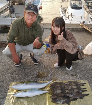STU48の舞ℚこと中村舞さんとフレンドの社長の二人がエギング&ハマチ釣りに挑戦です。