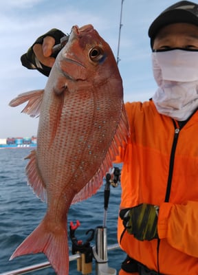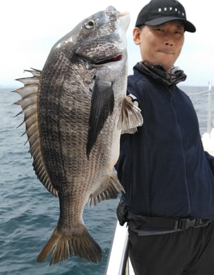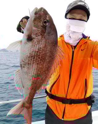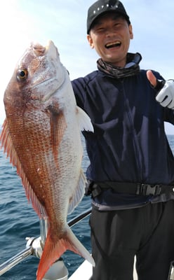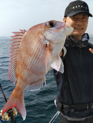 鯛は型も良く船中10枚ぐらい釣れてました。もちろん全員安打でした。