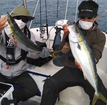潮が折り返したときに、僚船からハマチが食いだしたと連絡がありジギングに変更しました。