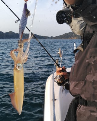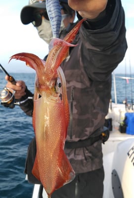 アオリイカ狙いは2名だけ竿を出しましたが、オモリグ仕掛けにケンサキが3バイ釣れました。
