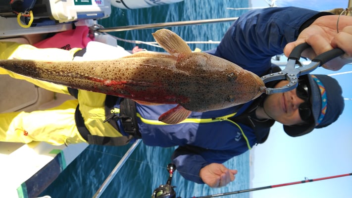 満ち潮で鯛、潮止まり前後で丸ハギ、引き潮でアオリイカの三点盛りです。