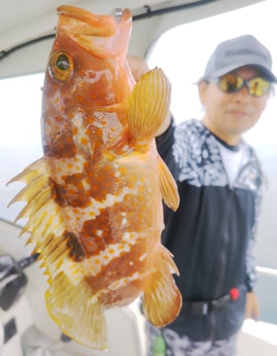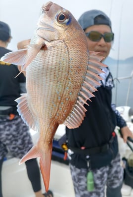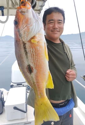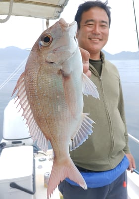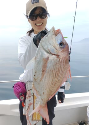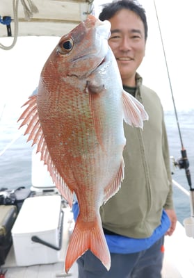 2023年 · 5月 19日, 2023年 5月18日 タイラバ 釣果 今日は3名のお客様+助手1名の4名で出船しました。 今日もお客様3名はよく釣っていました。久しぶりに70.5cmの大鯛も釣れました。 アコウも2本混ざりました。恐れ入りました。 そして助手の釣果は、、、 今日も缶ビールを片手に不真面目に釣りをしていました(笑)。 50㎝級のモンツキイサキ(クロホシフエダイ)も釣っていました。 鯛は3人半で24枚でした。※半人前はもちろん しおさい丸の広井船長です、、、(笑) お疲れ様でした。ありがとうございました。 しおさい丸の船長も、お疲れ様でした。 tagPlaceholderカテゴリ: