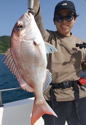 2023年 · 5月 23日, 2023年 5月23日 鯛 釣果 今日は3名のお客様と鯛狙いで出船しました 1名のお客様は活エビ餌の一つテンヤで、2名のお客様はタイラバ中心で狙いました。 テンヤで狙ったお客様は鯛15枚で、他にウマヅラハギ等釣られてました。恐れ入りました。 タイラバで狙ってたお客様は2名で10枚でした。 最大の鯛は58cm。3名で計25枚でした。 予報どおり風が強く、殆ど写真を撮ることが出来ませんでした。スイマセン。 お疲れ様でした。ありがとうございました。 tagPlaceholderカテゴリ:
