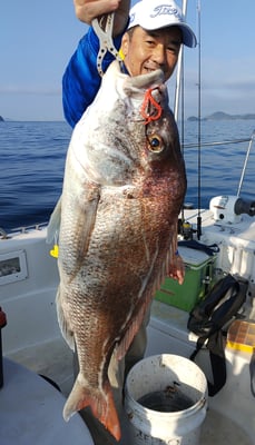 朝一、一流し一投目で何と80cmの鯛魔人、降臨、、、恐れ入りました。