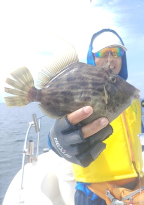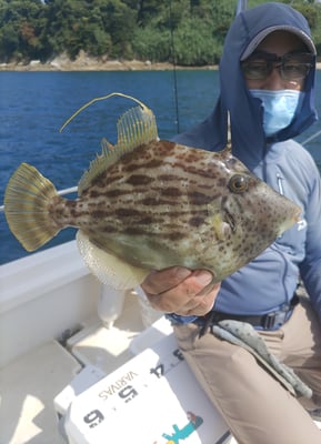 あいにく南西からの風が強く、糸がふけて釣りづらいのでカワハギに変更しました。