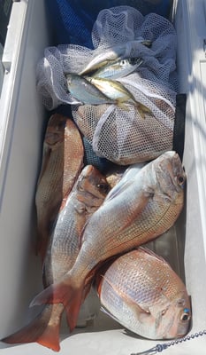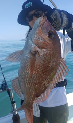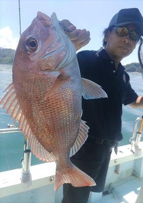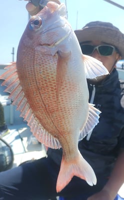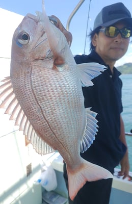 これが正解で鯛は今日も高活性~。余裕(?)の全員安打で、二時間弱でしたが船中16枚。恐れ入りました。