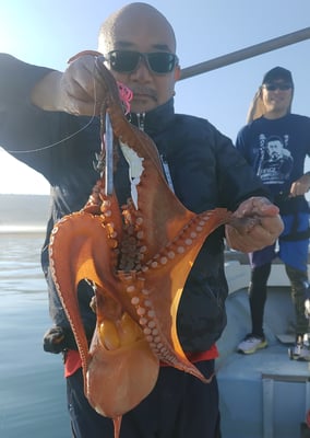 朝一のタコは船中5ハイ。久しぶりに2.5kgのBIGなタコを釣ってくれました。流石です。