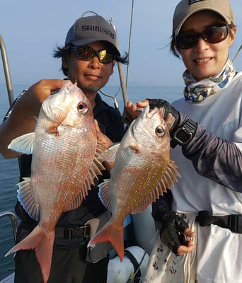 鯛は朝一、一流し目からラッシュ突入~。ダブルヒットのオンパレードでした。