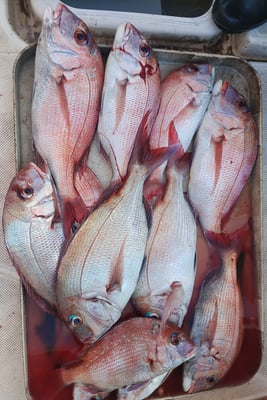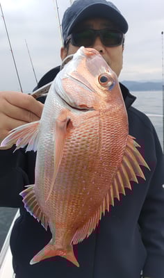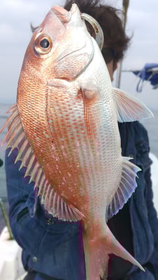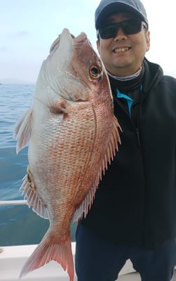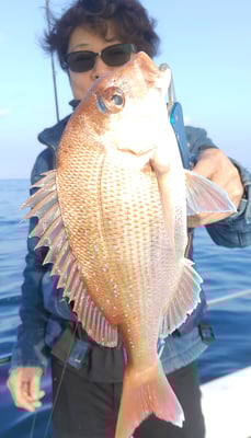 久しぶりに鯛は好反応。無風べた凪だったのでドテラで操船不要。