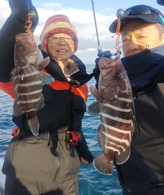 松山沖では珍しいマハタのダブルヒットや、アコウ、ヨシノゴチも混ざり、嬉しいお土産になりました。