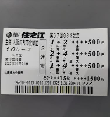 2レースに計3000円投資して4400円の回収。1400円の利益 (´・ω・`)ショボ
