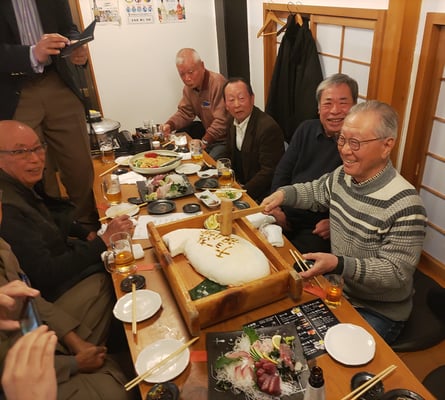 チョーさんのお誕生会に船釣りの船長代表でしおさい丸 広井船長と私がお呼ばれしました。