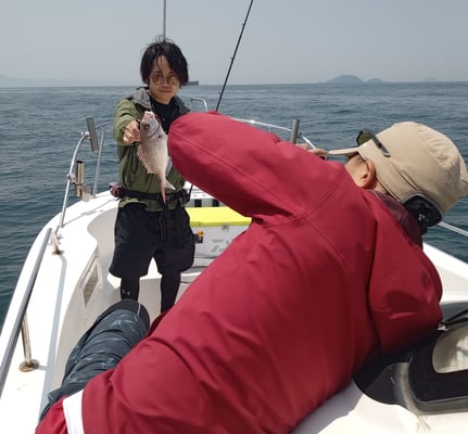 2025年 · 6月 03日, 2025年 6月1日 タイラバ 釣果 今日は4名のお客様と鯛狙いで出船しました。 (株)ウエスコ様の釣り部(?)の方々が遊びに来てくれました。 タイラバ初心者が二名いらっしゃいましたが、幹事の方が丁寧に釣り方を教えて難なく複数の鯛をゲットしてました。 幹事は殆ど釣りをすることなく釣れた鯛の処理や写真撮影等々、船上で働いてましたw お疲れ様です。 鯛の釣果はまずまず。外道のヤズを私にプレゼントしてくれました。ありがとうございます。 お疲れ様でした。ありがとうございました。 tagPlaceholderカテゴリ: