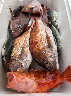 鯛も型がイマイチでしたが、安定して釣れます。ウッカリホゴも釣れ、嬉しいお土産になりました。