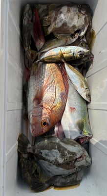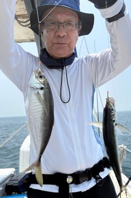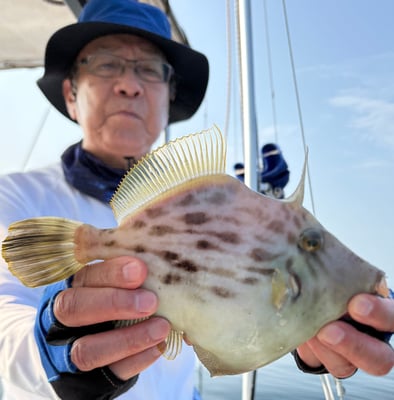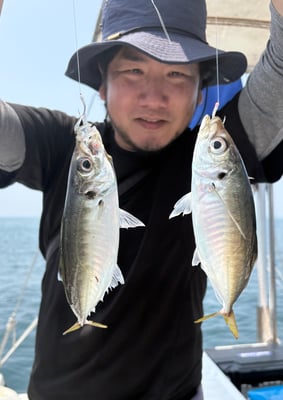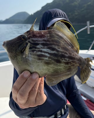 2025年 · 7月 09日, 2025年 7月9日 ハギ鯛アジ&青物 釣果 今日は3名様乗合でカワハギ、鯛、アジ&青物狙いで出船しました。 カワハギは今日も型が良く、肝頭は15枚ぐらいでした。 鯛は50㎝までを船中6枚。アジは時合が短く1人当たり5~7尾でした。 鯛の反応を探していると青物のナブラに囲まれ、キャスティングで仕留めてました。流石です。 魚探にもヤズの反応があり、タイラバにもヒットしてました、、、w 今日は興居島を一周するだけで4魚種全てをカバーすることが出来、ラッキーな一日でした。 お疲れ様でした。ありがとうございました。 tagPlaceholderカテゴリ: