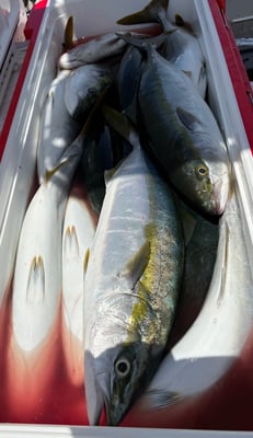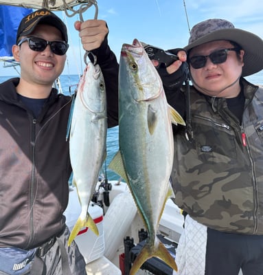 2025年 · 7月 12日, 2025年 7月12日 鯛&青物 釣果 今日は2名様チャーターで鯛&青物狙いで出船しました。 ジギングは久しぶりにラッシュ突入~。2名様で20本以上の大漁でした。 大型クーラーボックスは満タンに、、、恐れ入りました。 今日も北風が強くタイラバは風裏の水深17m~20mのドシャローを流してみました。 鯛は61cmの良型も釣れ船中6枚。ヨシノゴチも釣れ、嬉しいお土産になりました。 お疲れ様でした。ありがとうございました。 tagPlaceholderカテゴリ: