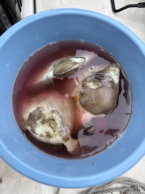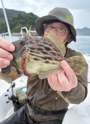 2025年 · 7月 15日, 2025年 7月14日 カワハギ 釣果 今日は3名のお客様とカワハギ狙いで出船しました。 大雨&雷で、半日遊漁に変更して貰いました。 今日のお客様はアサリ餌を使っていましたが、地海老餌が手返し良くアタリも多いですよ~ 写真のように頭と尻尾は捨てて、あらかじめ身の部分だけを針のサイズに切っておけば餌付けが楽ちんです。 味の素を振りかけておけば、更に集魚効果があります。是非、試してみてください。。。 土砂降りの中、お疲れ様でした。ありがとうございました。 tagPlaceholderカテゴリ: