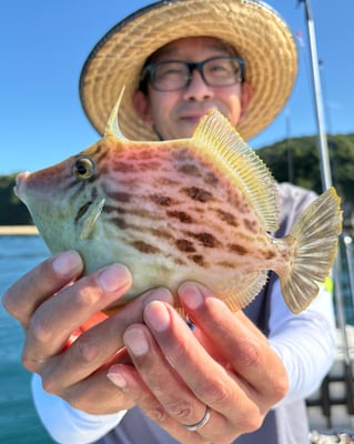 2025年 · 7月 21日, 2025年 7月20日 21日 釣果 20日は青物&鯛狙いで、21日はタコ、ハギ&鯛狙いで出船しました。 まずは20日の釣果、、、 反応良く、ジギングはラッシュ状態でした。皆さん、引きと暑さで疲れたようで、鯛狙いにチェンジしました。 タイラバは終盤にプチラッシュがあり、何とかまとめることが出来ました。めでたしめでたしw 21日は、タコ、カワハギ&タイラバ少々のメニューで出船しました。 タコはキロ級も混ざり、竿頭は4ハイでした。 カワハギは尺ハギも混ざり、皆さん10枚前後の釣果でした。 ラスト1時間弱、鯛を狙い船中3枚でした。。。 お疲れ様でした。ありがとうございました。 tagPlaceholderカテゴリ: