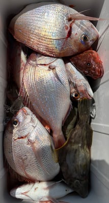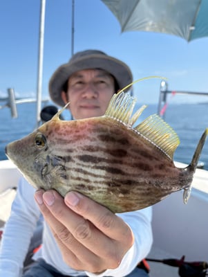 2025年 · 7月 22日, 2025年 7月22日 カワハギ&鯛 釣果 今日は4名のお客様と鯛&カワハギ狙いで出船しました。 皆さん前半のカワハギ釣りは慣れてませんでしたが、コツを掴んでから良型を連発してました。流石です。 肝頭は20枚ぐらいでした。恐れ入りました。 後半の鯛狙いは70cmを頭に船中20枚以上釣ってくれました。強烈な二枚潮でポイントは限られました、、、 一度、台風などで海水をかき混ぜないと強烈な二枚潮は収まらないかも、、、 暑い中、お疲れ様でした。ありがとうございました。 tagPlaceholderカテゴリ: