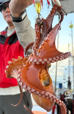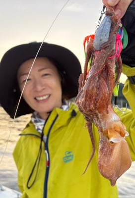 朝一のタコは釣りガールがダントツの竿頭で8ハイ。船中17ハイでした。