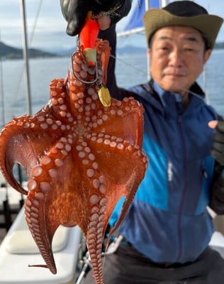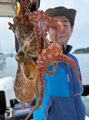 朝一のタコは良型も混ざり、ポツポツと釣れました。