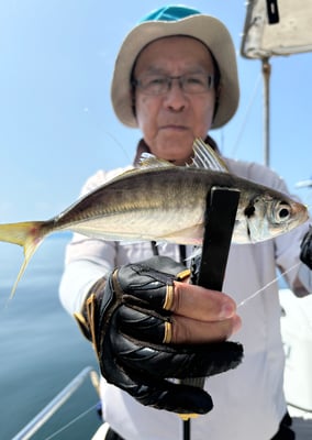 アジも一流しに2尾ずつくらい釣れ、全員安打でした。