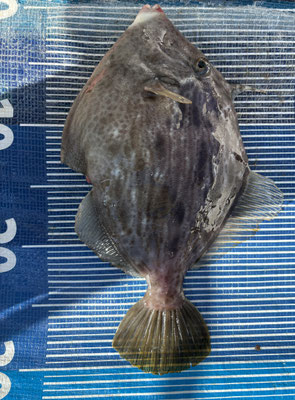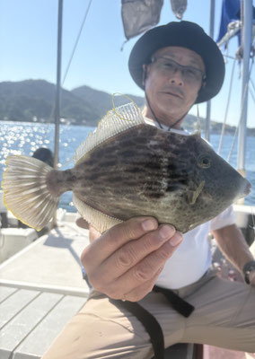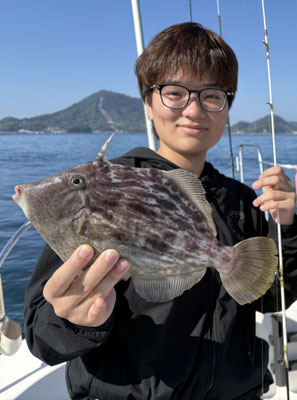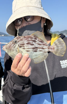 お嬢様のファーストヒットは尺越えのカワハギでした。恐れ入りました。
