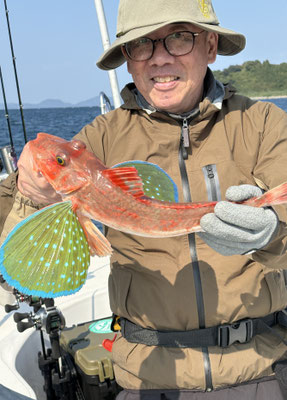逆に釣れると思っていた鯛がイマイチで、塩焼き一枚、良型ホウボウ×2でした。。。