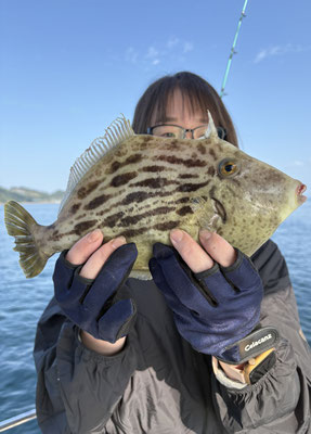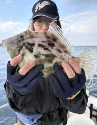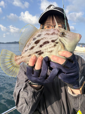 特にカワハギ初挑戦の釣りガールが大活躍。31cmのBIGハギも釣り、断トツの竿頭でした。恐れ入りました。
