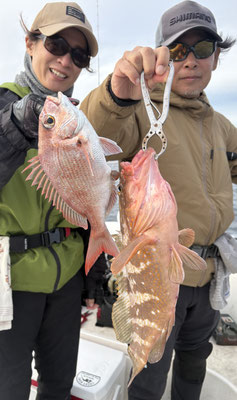 2025年 · 10月 31日, 2025年 10月30日 ティップラン&鯛 釣果 今日は3名のお客様とアオリイカ&鯛狙いで出船しました。 潮が動かず厳しい釣りになりましたが、、、 今日も釣りガールが活躍してました。アオリイカは釣りガールが3ハイ釣っただけでした、、、汗 鯛は船中6枚。他にはアコウ×2、ヨシノゴチ、ホウボウ、甲イカ、ホゴ、フグ😅 助っ人として和気の遊漁船「ふくさん」の船長、福ちゃんに乗船してもらいましたが、、、 最後の最後にチャリコを釣っただけでした、、、www お疲れ様でした。ありがとうございました。 tagPlaceholderカテゴリ: