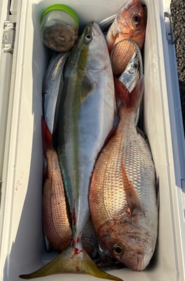 2025年 · 11月 29日, 2025年 11月29日 タチウオ&青鯛 釣果 今日は4名のお客様とタチウオ&青鯛 狙いで出船しました。 引潮から満ち始めまでタチウオを狙いました。 タチウオはF3~F6までよく釣ってくれました。はっきり言って爆釣でした。皆さん、ドラゴンをゲットしてました。 後半の鯛&青物も良く釣ってくれました。恐れ入りました。 鯛は船中7枚。TOP4枚でした。ジギングにはハマチの他、SAWARAも釣れ嬉しいお土産になりました。 クソ潮の割には当たりも多く、楽しめたようです。皆さん、クーラーボックス満タンでした(嬉)。 お疲れ様でした。ありがとうございました。 tagPlaceholderカテゴリ: