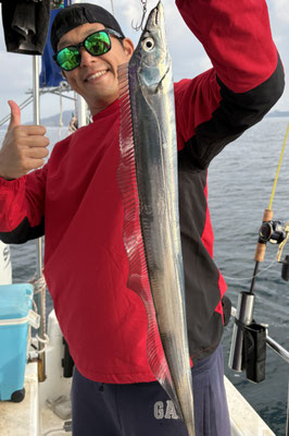 青物&鯛でのリクエストでしたが、タチウオが釣れてると仲間の遊漁船から連絡が入り、急遽、タチウオを狙うことにしました。