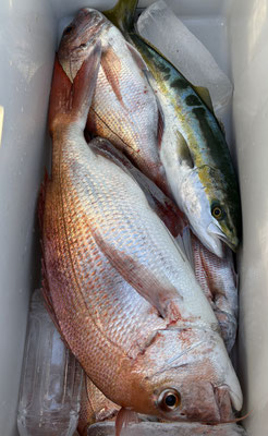 2025年 · 12月 18日, 2025年 12月18日 タイラバ 釣果 今日は4名のお客様と鯛狙いで出船しました。 潮止まり前後にタチウオもする予定でしたが、状況はよくないとの連絡があり鯛だけにしました。 鯛はラッシュこそありませんでしたが、一日中ポツポツと釣れました。 鯛は60cmを頭に19枚。他にはハマチ×1、ヤズ×2、アコウ×2がタイラバで釣れました。 お疲れ様でした。ありがとうございました。 tagPlaceholderカテゴリ: