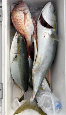 2025年 · 12月 27日, 2025年 12月27日 鯛&青物 釣果 今日は3名のお客様と鯛&青物狙いで出船しました。 朝一、タイラバからスタートしました。が、、、本命のポイントは風波が強く風裏に逃げました、、、汗 そして、鯛の反応を探しながらの拾い釣りでした😥 紫色の怪しいタイラバにアタリが集中してました。最近、ビンビンスイッチには余り反応しないようです😓 ジギングはヤズが中心でしたが、よく釣れました。 メーター級のサワラも釣れました。メジロ×2、ヤズ多数でした。。。 寒い中、お疲れ様でした。ありがとうございました。 tagPlaceholderカテゴリ: